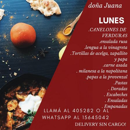 Canelones de verdura, lengua a la vinagreta, carne asada, empanadas, papas doradas, milanesas a la napolitana, y más opciones preparan hoy en Doña Juana.
