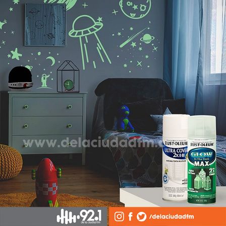 El aerosol es una pintura luminosa que crea un efecto brillante en la oscuridad después de ser cargada por luz natural o artificial.