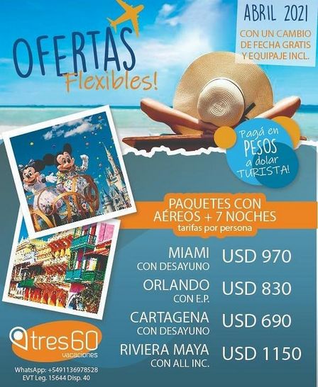 Vacaciones Tres60 recibe consultas al 2923 57 01 23