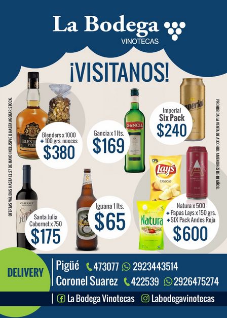 El vino Santa Julia Cabernet de 750 mililitros cuesta 175 pesos, la cerveza Iguana de un litro está a 65 pesos, y el Gancia por un litro sale 169 pesos.