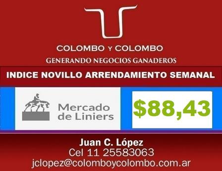 El mensaje comercial expresa que "en el Mercado de Liniers venda con plazo y cobre de contado con el sistema Pago Express de Colombo y Colombo. Las consultas pueden hacerse con el representante de Pigüé y la zona: Juan Carlos López al celular 1125583063 ó al mail Esta dirección de correo electrónico está siendo protegida contra los robots de spam. Necesita tener JavaScript habilitado para poder verlo."