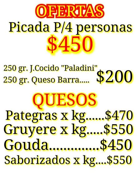 Para este primer fin de semana del mes de abril en el salón de calle San Martín 48 están destacando precios especiales en jamón cocido, pategras, gruyere, gouda, saborizados, y queso barra.