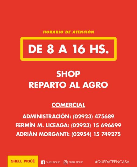 Estos servicios son garantizados por Shell Pigüé las 24.00 horas.