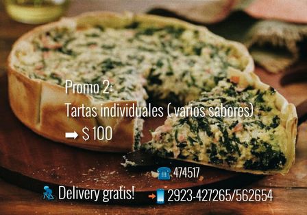 La promoción vigente, con delivery gratis, es de tartas individuales a 100 pesos.