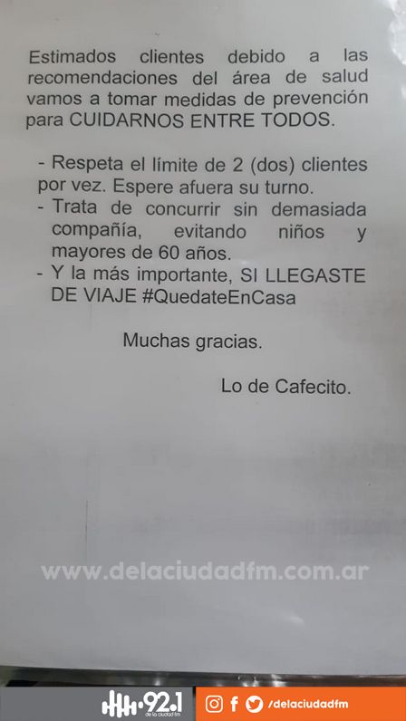 'Si llegaste de viaje quedate en casa' dice la sugerencia del local ubicado en calle Ciudad de Rodez 160.