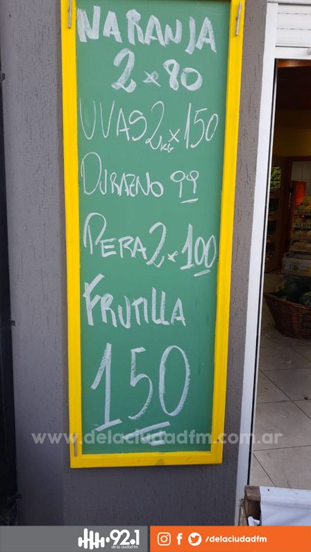 Disfruta tiene el kilo de frutillas a 150 pesos, los dos kilos de peras a 100 pesos, y el kilo de duraznos a 99 pesos.