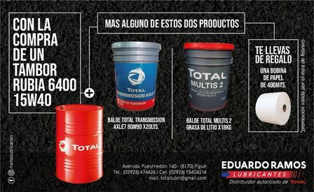Con la compra de un tambor Rubi 6.400 15 W 40 más alguno de los dos baldes de la foto el regalo es de una bobina de papel de 400 metros.