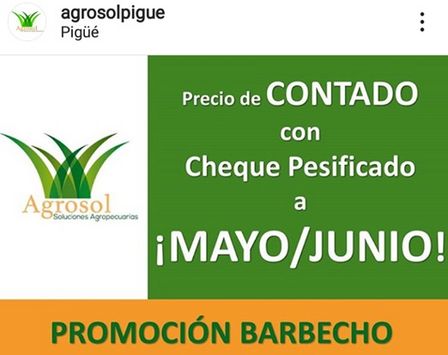 Agrosol está presentando, desde sus oficinas del Parque Industrial de Pigüé, esta nueva promo especial para barbechos.