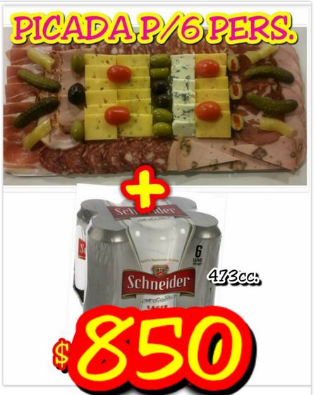 En el local de calle San Martín 48 de la ciudad hay una nueva promo con 6 latas de cerveza Schneider de 473 centímetros más una tabla de picadas para 4 personas.