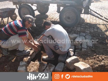 Más trabajos de reparación del adoquinado céntrico fueron llevados a cabo por la firma local en Pigué.