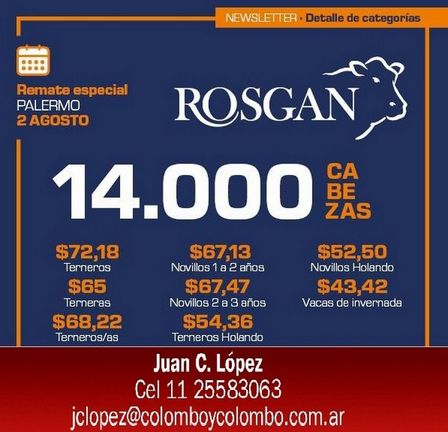 El aviso asevera que "la consignataria comunica la fecha para el próximo Rosgan: 15 de Agosto