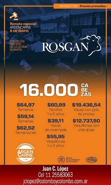 Colombo y Colombo dio a conocer los precios promedios del Rosgan de mayo