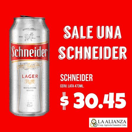El valor de la lata de 473 centímetros cúbicos de cerveza Schneider es de 30.45 pesos.