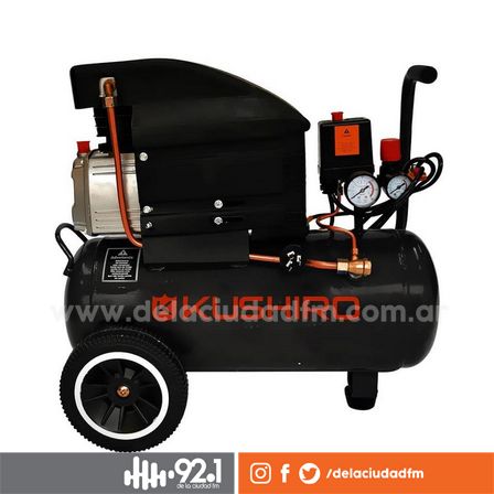 El compresor de aire Kushiro 25L 2HP, monofásico, cuesta 4.550 pesos, de contado, contando con un tanque de 25 litros, una potencia de 2HP, y una presión de 1.5kW.