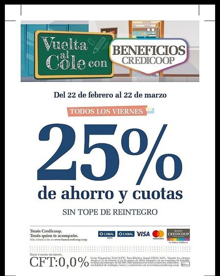 Es el último viernes de descuento con tarjetas del Banco Credicoop en Irigoyien 34 de la ciudad.