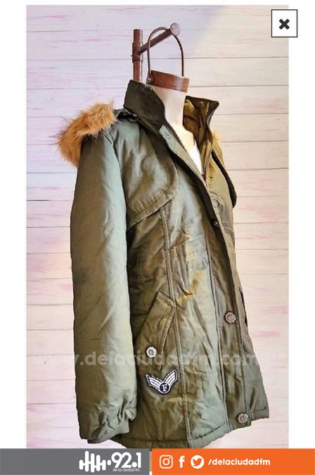 Para estos días de frío están presentando las nuevas parkas con corderito, puño, cierre y botones en colores beige, negro, y verde oliva.