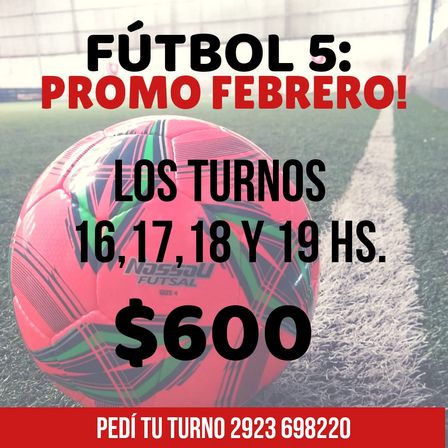 El fútbol 5, en febrero, tiene un precio especial de 600 pesos el turno para los horarios de las 16.00 17.00, 18.00 y 19.00.