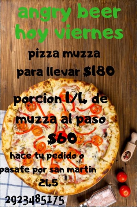 El local de calle San Martín 245 está promocionando una pizza para llevar a 180 pesos o la porción de un cuarto de pizza al paso a 60 pesos.