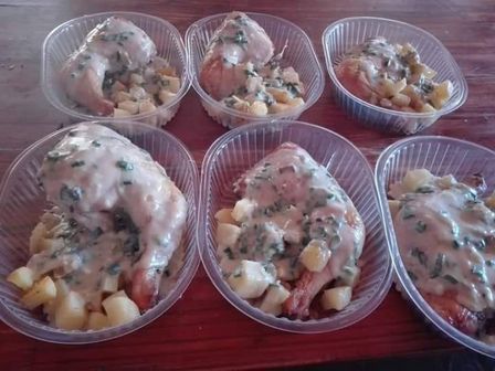 Durante el día de hoy, viernes, en Pizzabrossa cocinan pata muslo al horno con papas al verdeo.