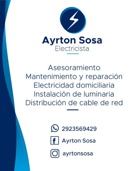 Ayrton Sosa desarrolla trabajos de mantenimiento, reparación, electricidad domiciliaria, instalación de luminarias, y distribución de cable de red.