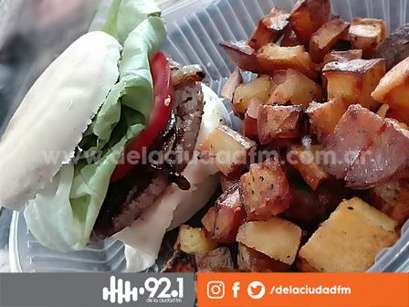 Cocinan hoy hamburguesas caseras en pan con: lechuga, tomate, jamón y queso, más el opcional de cebolla caramelizada, papas rústicas, y la propuesta vegetariana.