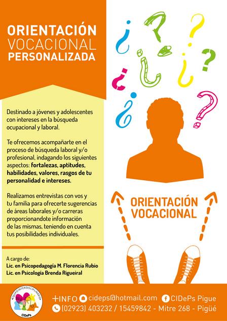 La Orientación Vocacional Personalizada destinada a jóvenes y adolescentes con intereses en la búsqueda ocupacional y laboral cuenta con cupos en Avenida Mitre 628 de Pigüé.