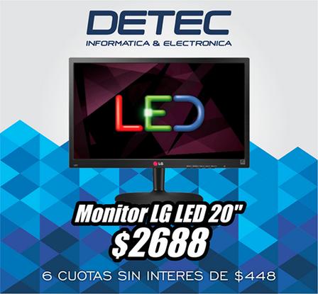 En Detec el monitor LG de 20" está a 2.688 pesos o en 6 cuotas sin interés de $ 448.