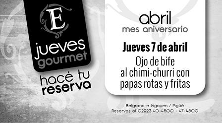 Para el jueves gourmet de esta semana las reservas pueden hacerse al 40 – 4.500 ó 47 – 4.500.