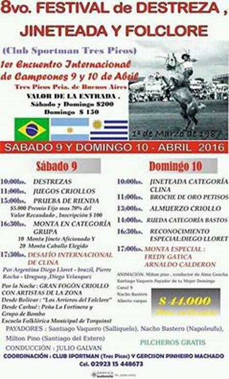 El domingo, a las 10.00 horas, habrá jineteada en clina, broche de oro de petisos, un almuerzo, rueda de la categoría bastos, y el final será con una monta especial.