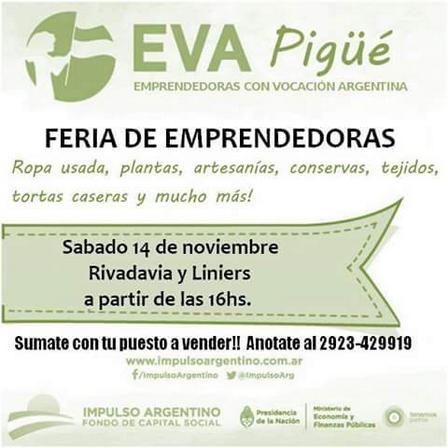 La Feria Eva se hará a las 16.00 horas en Liniers esquina Rivadavia de Pigüé.