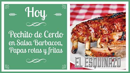 Esta noche, en el salón de Belgrano e Irigoyen de Pigüé, habrá pechito de cerdo en salsa barbacoa con papas rotas y fritas.