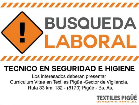 Textiles Pigüé busca un Técnico en Seguridad e Higiene