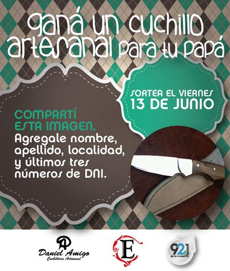 Se sortea un cuchillo artesanal para el día del padre, el viernes 13 de junio, al mediodía.