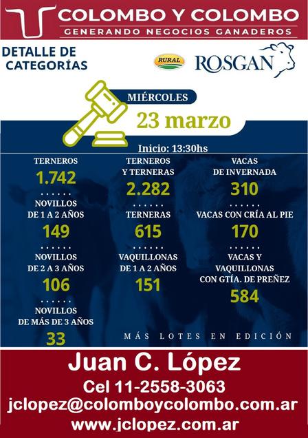 Las consultas pueden hacerse con el representante de Pigüé y la zona Juan Carlos López, al celular 1125583063, al mail Esta dirección de correo electrónico está siendo protegida contra los robots de spam. Necesita tener JavaScript habilitado para poder verlo. o en el portal www.jclopez.com.ar