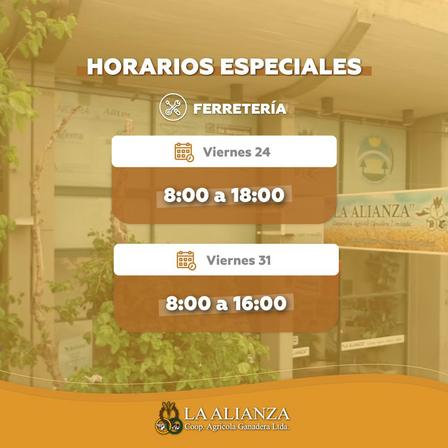 La atención al público tendrá lugar, en Cooperativa La Alianza, de 8:00 a 16:00 horas.