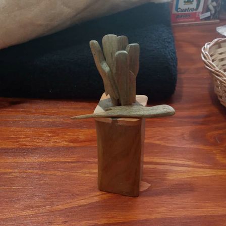 Hay materas, mates, bombillas, mimbrería, matras, alfarería de barro, cazuelas y utensilios en madera, de olivo y paraíso, sets de asado y vino.