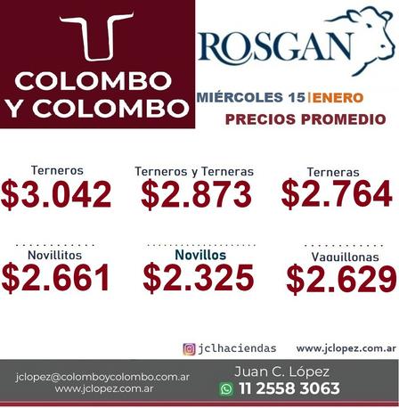 La consignataria, junto a su representante Juan C. López, presentó los precios promedio del Remate Rosgan de ayer, y anunció la fecha del Remate Rosgan Especial Colombo y Colombo para el 21 de febrero.