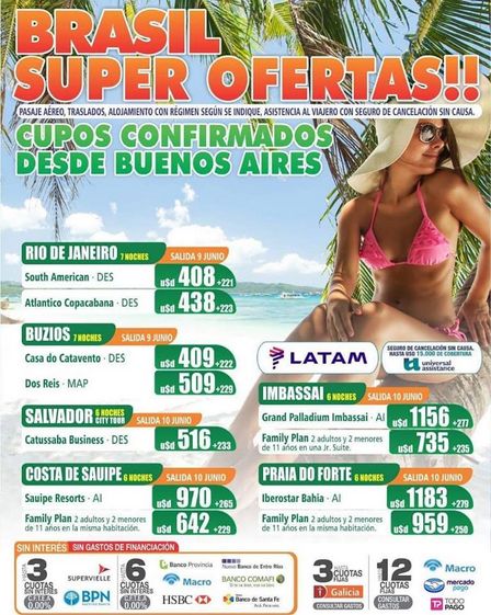 Vacaciones Tres60 tiene propuestas para viajar a Brasil.