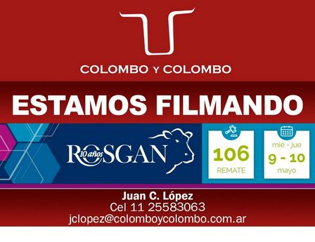 La consignataria comunicado que ya se están filmando los lotes para el próximo ROSGAN de los días 9 y 10 de mayo. Anote su consignación con anticipación