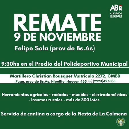 Las consultas pueden hacerse a través del representante de Pigüé y zona, Juan C. López, al celular 011-15-2558-3063, al mail Esta dirección de correo electrónico está siendo protegida contra los robots de spam. Necesita tener JavaScript habilitado para poder verlo. o vía el portal www.jclopez.com.ar