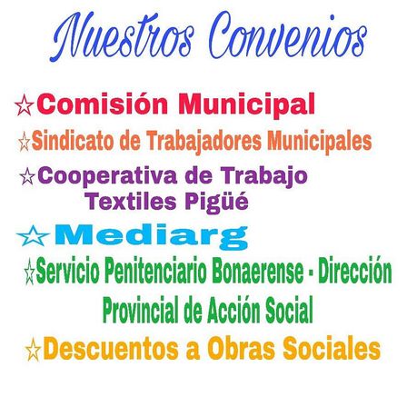 BerCe cuenta con convenios relacionados al Sindicato de Trabajadores Municipal, Comisión Municipal, la Cooperativa de Trabajo Textiles Pigüé Limitada, Mediarg, y el Servicio Penitenciario Bonaerense.