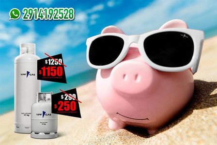Con esta promociom la garrafa de 10 Kg. con envío a domicilio cuesta $ 250 o compras 2 por sólo $ 400. El cilindro de 45 Kg. con envío a domicilio cuesta $ 1150 o compras 2 por sólo $ 2000.
