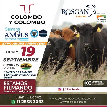 La Casa Consignataria, junto a su representante Juan C. López, ya filma para el Remate Rosgan del 19 de septiembre, Especial Angus de Primavera, que se realizará en el Mercado Agroganadero de Cañuelas, y que será transmitido en vivo por Canal Rural desde las 9:00 horas.