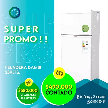Se trata de una heladera Bambi de 239 litros que tiene un valor de 490.000 pesos de contado o bien puede abonarse en 12 cuotas sin interés por un costo final de 580.000 pesos.