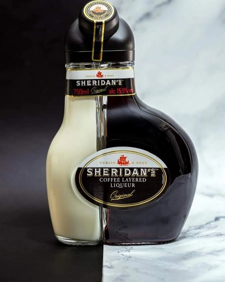 Esta propuesta, de Sheridan’s Licor de Café, es con licor doble, natural, compuesto de crema de vainilla y licor de café y chocolate con base de whisky irlandés.