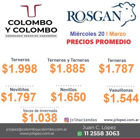 La Casa Consignataria dio a conocer los precios promedios del Remate Rosgan de ayer anunciando su próximo Remate Rosgan para el día 19 de abril, Especial Colombo y Colombo, para el que ya están filmando.