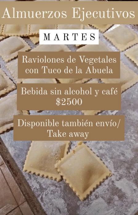 Fuego Sagrado Restaurant cocina raviolones de vegetales con tuco de la abuela.