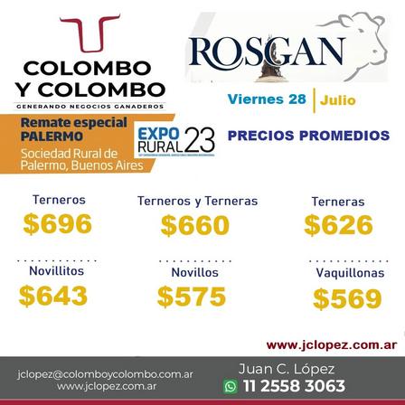 La consignataria dio a conocer los valores promedios de distintas categorías del Rosgan Palermo 2023, en un remate de gran firmeza en los precios, con subas del 20 % al 2 5% en las categorías de invernada.