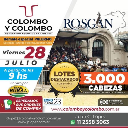 Colombo y Colombo confirmó 24.000 cabezas para el remate Rosgan Especial de Palermo