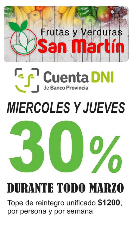 Frutas y Verduras San Martín mantiene el 30 % de descuento con Cuenta DNI